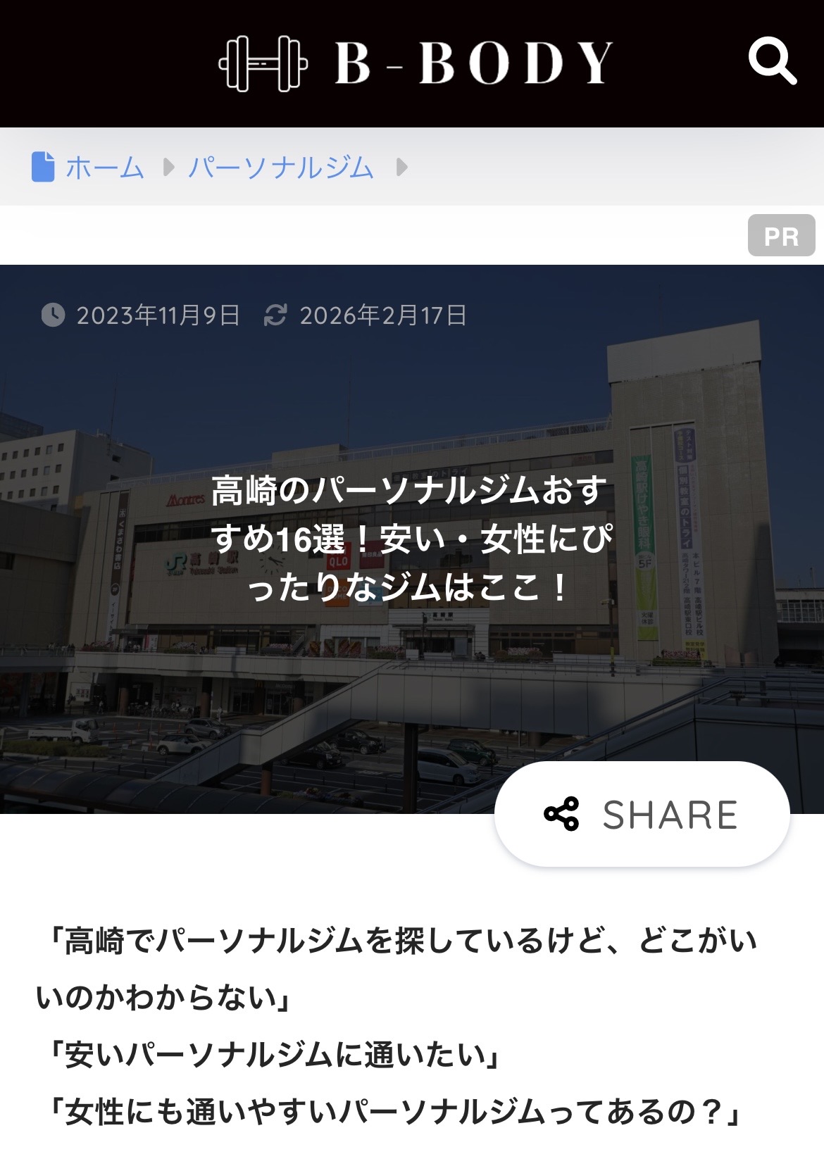 B-BODYの記事にて、「高崎 パーソナルジム」に当ジムをご紹介いただきました。